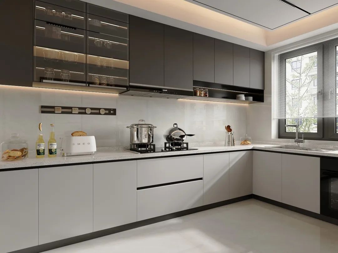 獨特的米灰色調搭配精致紋理,展現出典雅時尚的設計感。超白坯體讓石紋更顯立體通透,適合打造輕奢風格空間。