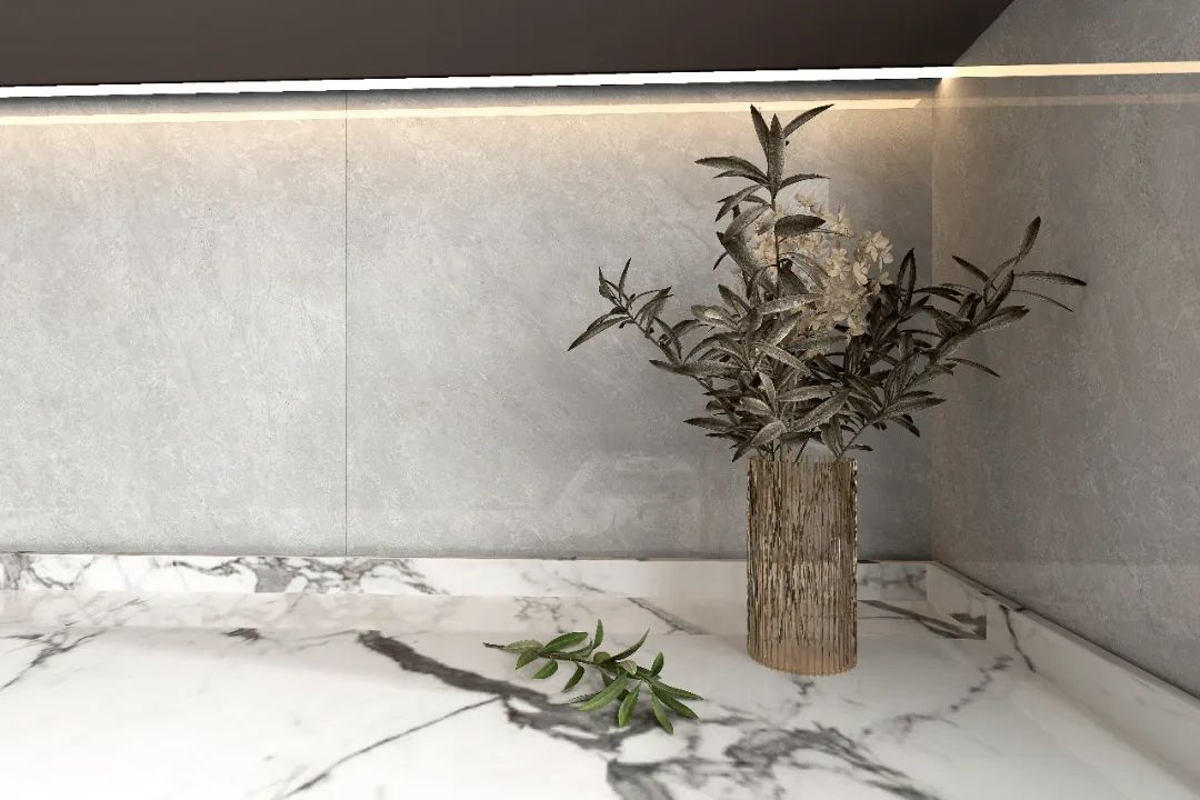 亮光面瓷磚具有表面光滑、易打理、通透感強的優點,其石紋肌理感也更強。90°左右的光澤感可提高廚房空間明亮程度,營造輕奢大氣的視覺效果。