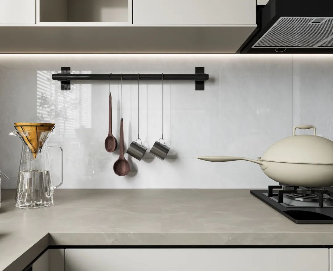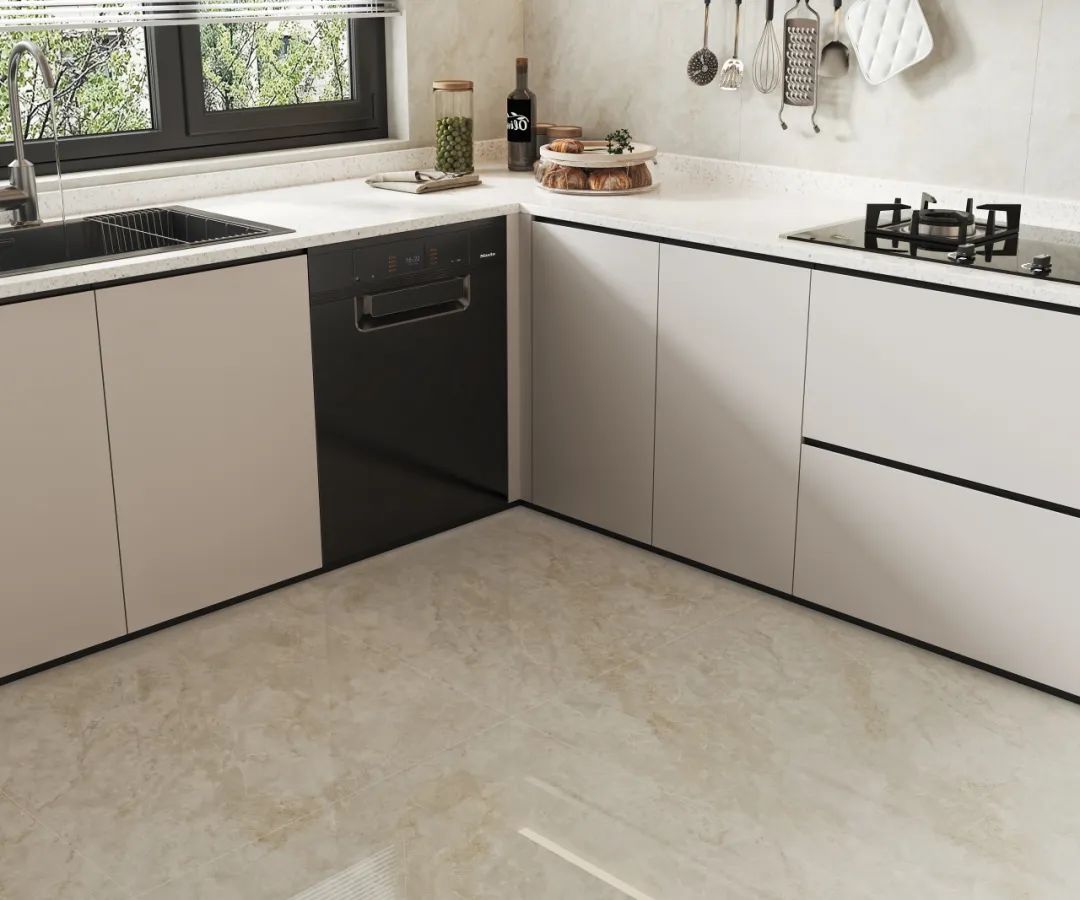磚面細膩溫潤,觸感如baby肌,9-25°柔和光感,兼具防滑、防水、耐磨特性。營造精致高級氛圍,讓下廚更輕松,適配侘寂、奶油風等,為廚房添舒適質感。