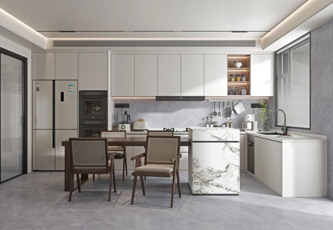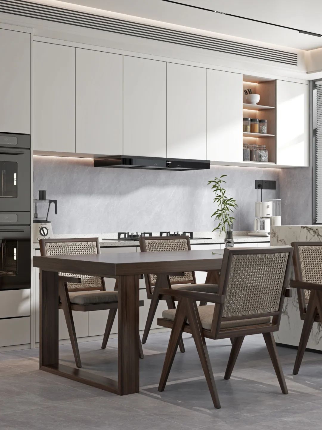 把“侘寂美學”裝進廚房,維萊特如磨砂玉石,紋理似自然生長的淺褐脈絡,營造出古樸又寧靜的氛圍。在此做飯,像把喧囂關在門外,只有食物的香氣和溫柔的光。關鍵還耐臟!阻絕細微污漬、油點侵蝕,日常輕輕擦拭就干凈,從牢騷滿腹的“做飯苦役”,變成哼著小曲兒唱著歌的“顛勺詩人”。