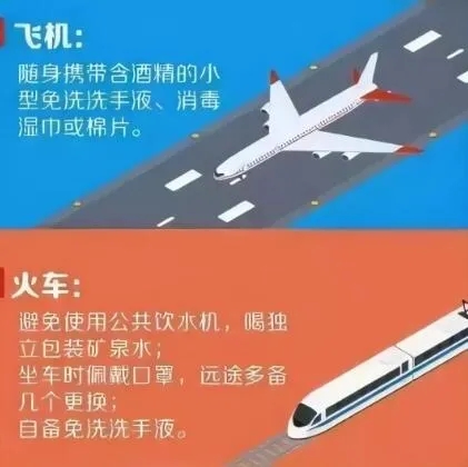 復工返程高峰,不管是坐飛機、火車還是自駕車,以及到公共場所和乘坐公共交通工具時,全程佩戴醫用外科口罩或N95口罩。